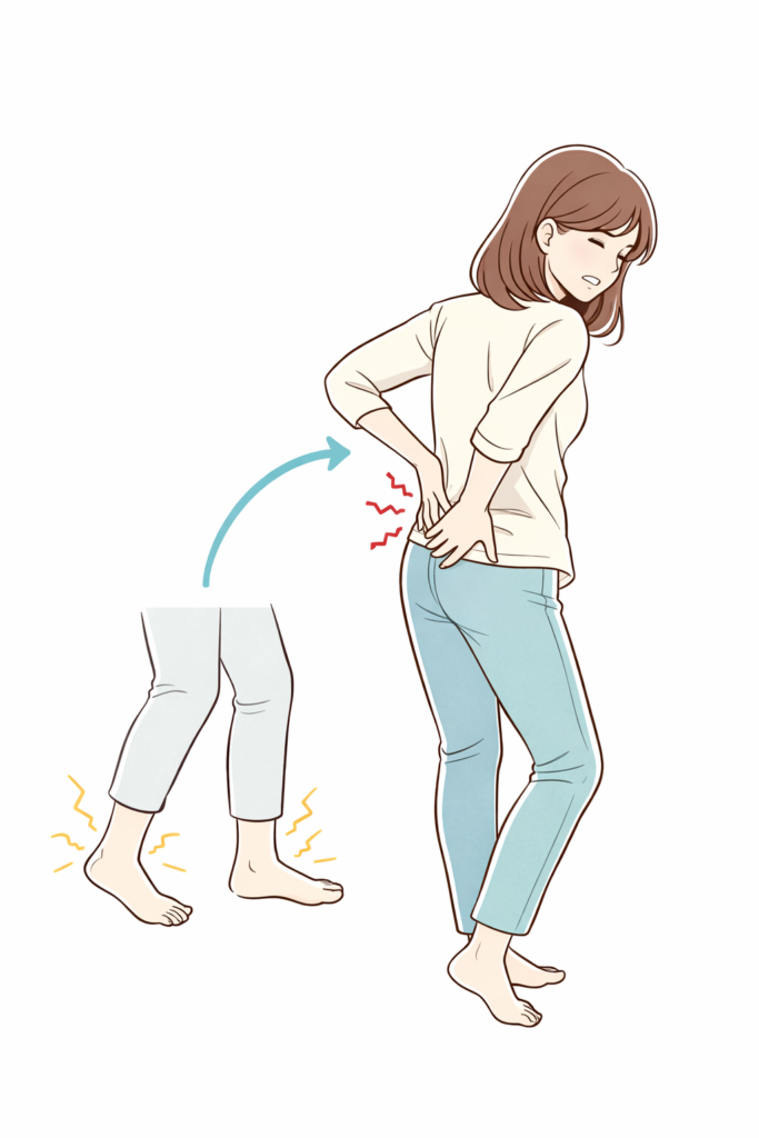 足が疲れてくると、腰痛が出やすい?🦵 夕方になると 腰が重い・痛くなる… それ、足の疲れが原因かもしれません。 ⸻ なぜ起こる? 足が疲れると 筋肉がうまく使えなくなり 本来、足で支えるはずの負担を 腰がかばうようになり […]